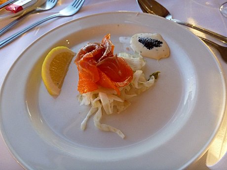 Grilled salmon accompanied by seasonal vegetables, served with capers and lemon oil (GF)