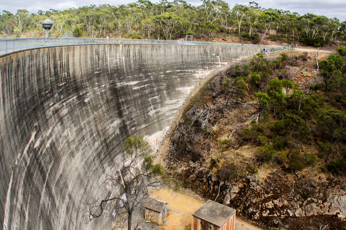 After winding our way through the North-eastern suburbs and scenic Adelaide Hills for an hour, we stop for coffee at Williamstown - the gateway to the Barossa. We then visit the astonishing Whispering Wall* as tall as a 9-storey building and constructed in a perfect semi-circle over 110 years ago. It’s possible to hear someone whisper from one end of the dam wall to the other end, 140 metres away.
